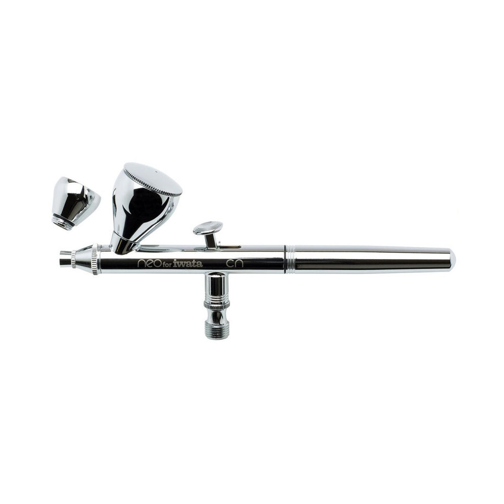 NEO CN Gravity Feed Dual Action airbrush has a detachable 7 ml fluid cup with lid that is large enough for color mixing and an additional 1.5 ml colour cup that is ideal when using small amounts of spray medium. Fine atomization is achieved with the smallest air compressors, making NEO an affordable option for general purpose spraying and for anyone wanting to airbrush for the first time.