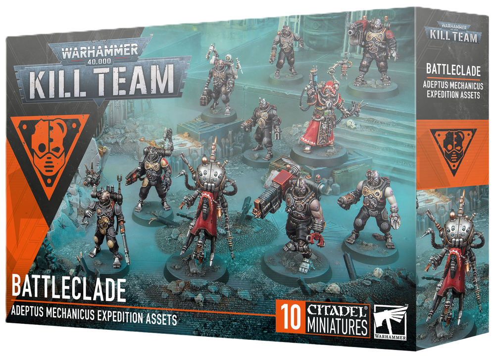 This multipart plastic kit builds 10 Battleclade miniatures which can be used as efficient and specialised operatives in games of Kill Team, or fielded in an Adeptus Mechanicus army in games of Warhammer 40,000. The kit includes interchangeable weapon arms and heads to customise your kill team, plus components to build specialists like a thrall-reprogramming Servitor Underseer, crude Technomedic Servitor, data-relaying Auto-Proxy Servitor, and more.