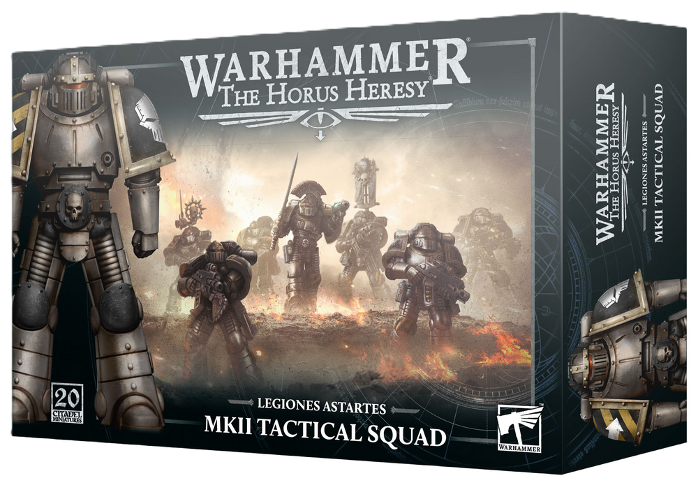 This kit comprises 344 plastic components, 20x Citadel 32mm Round Bases, and 1x Horus Heresy Legion Infantry Transfer Sheet containing 618 high-quality waterslide transfers – featuring Legion iconography for the Sons of Horus, Imperial Fists, Iron Warriors, and Salamanders – to decorate your miniatures.