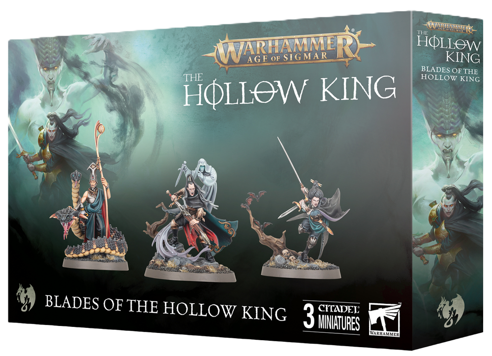 This multipart plastic kit builds the Blades of the Hollow King, a unit with unique skills for your Soulblight Gravelords armies in games of Warhammer Age of Sigmar. Cado Ezechiar, Sissendra, and Aurelias were first seen in the Black Library novels The Hollow King, and Dead Kingdom. They now come to the tabletop as three characterful miniatures who are a force to be reckoned with, able to attack with a dizzying array of vicious attacks on any unfortunate enough to stand against them.