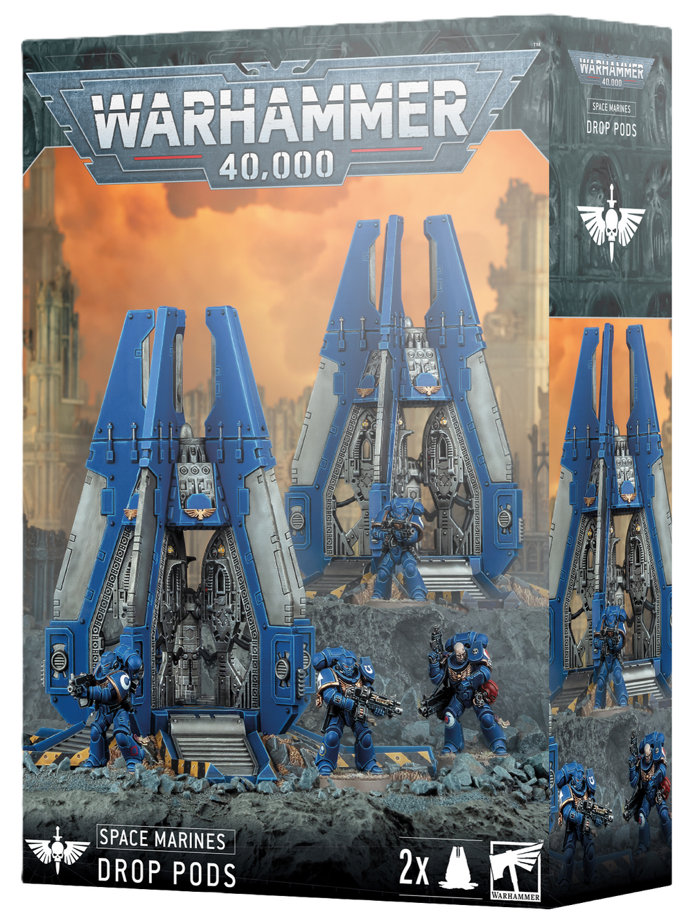 This multipart plastic kit builds two Drop Pods, transport vehicles for your Space Marines armies in games of Warhammer 40,000.