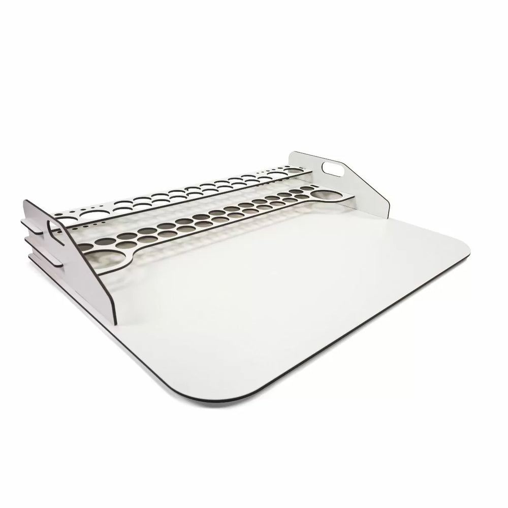 This module has space for 45 bottles of 17 ml/0.57 fl oz, together with 4 bottles of 35 ml/1.18 fl oz or 60 ml/2.02 fl oz, 2 bottles of 200 ml/6.76 fl oz and 10 brushes. Easy assembly, does not require glue.